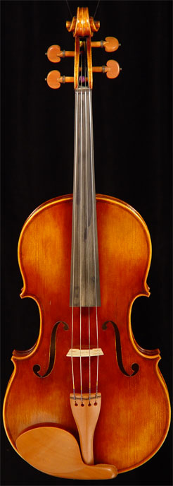 Visually striking, and tonally superior, for the artist player looking for an exceptional instrument. Available to either Guarneri or Stradivari model, and made with highly figured maple and choice spruce. Great workmanship, with rich and carrying sound. The Guarneri model has a slightly darker tone. Fine quality varnish and fittings. Size available 15" - 16 1/2". |