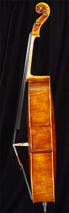 Visually striking, and tonally superior, for the artist player looking for an exceptional instrument. Available to either Montagnana or Stradivari model, and made with highly figured maple and choice spruce. Great workmanship, with rich and carrying sound. The Montagnana model has a slightly darker tone. Fine quality varnish and fittings. 4/4 size only. |