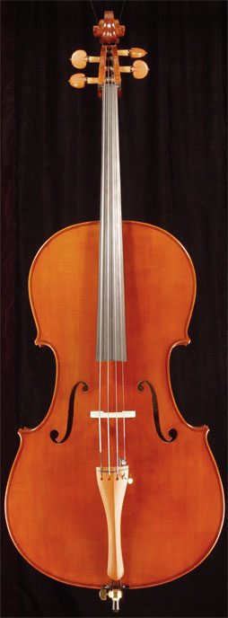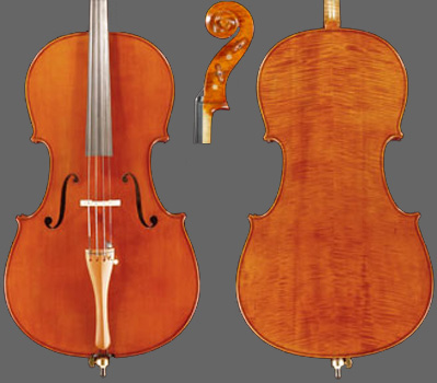 Attractively figured maple and superior spruce top make this cello a delight to own and play. The workmanship is outstanding, and the impressive sound and playing qualities equal instruments costing more than twice as much. High quality boxwood fittings, padded nylon soft case, and quality wood and horsehair bow. Impressive varnish. 4/4 size only. |